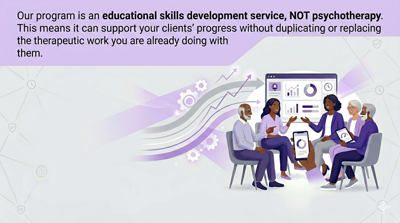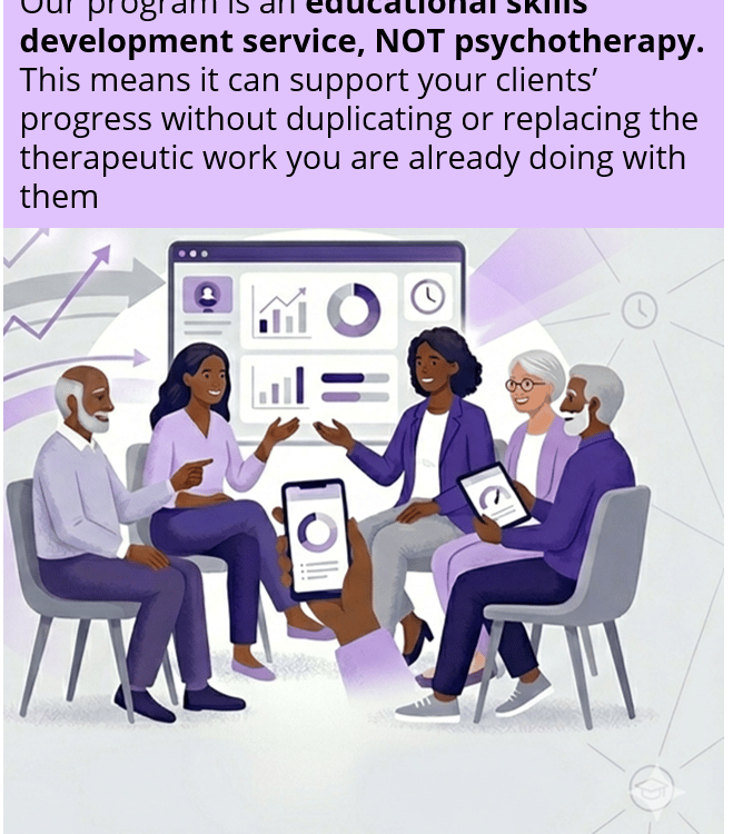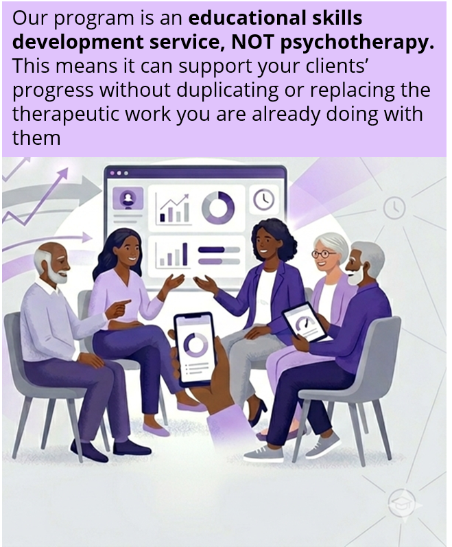 You provide psychotherapy, we provide skills education.